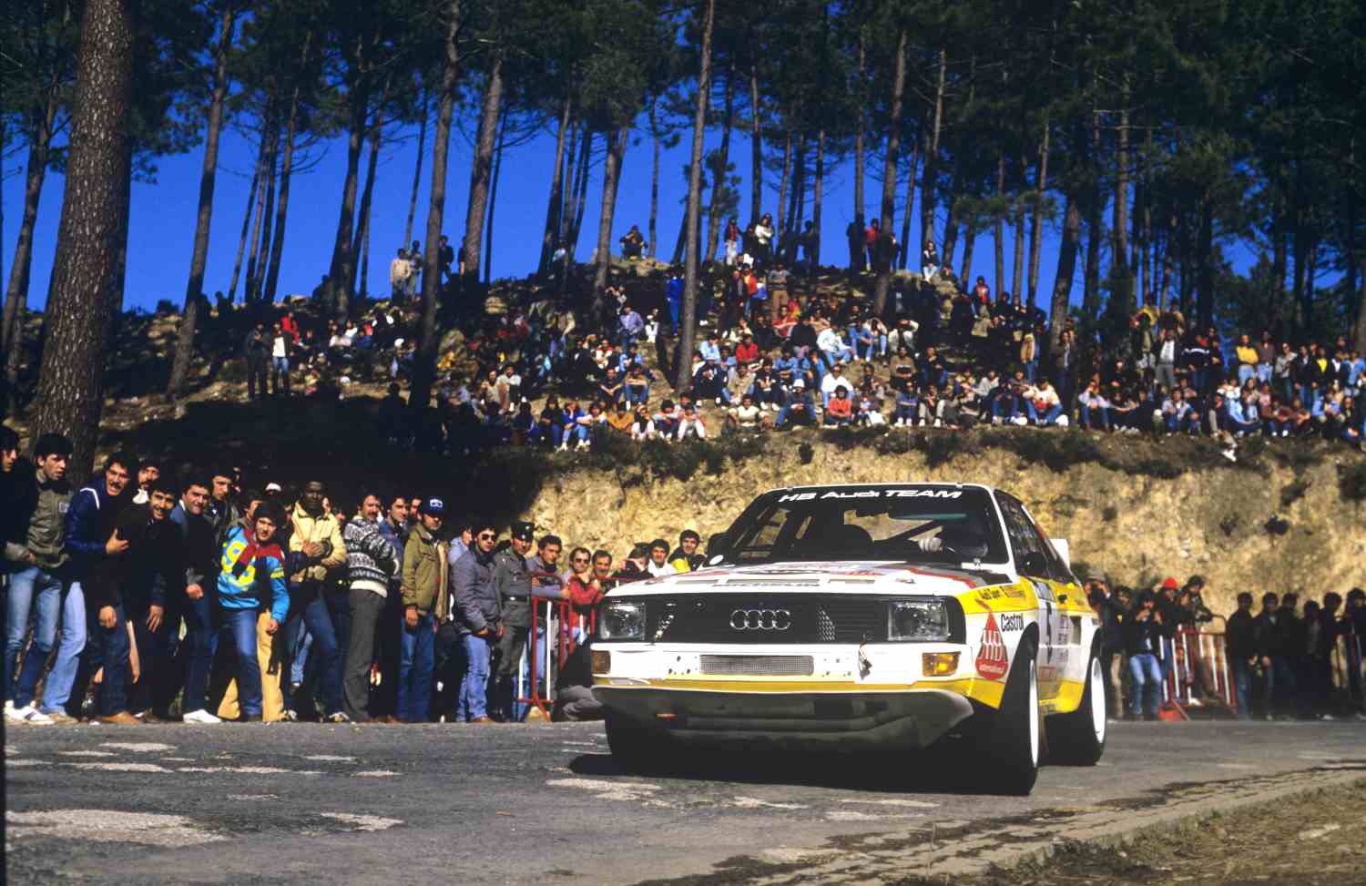 Foi aí que nasceram os lendários “muros humanos”. Na Lagoa Azul e na Peninha, e um pouco menos em Sintra, por ser menos acessível, excetuando a Rampa da Pena, multidões compactas abriam-se apenas no último instante para deixar passar os monstros do Grupo B — Lancia Delta S4, Audi Sport Quattro, Peugeot 205 T16, Ford RS200, e todos os anteriores ‘monstrinhos’ — em espetáculos de fascínio e insanidade que ajudou a forjar a identidade dos ralis em Portugal.