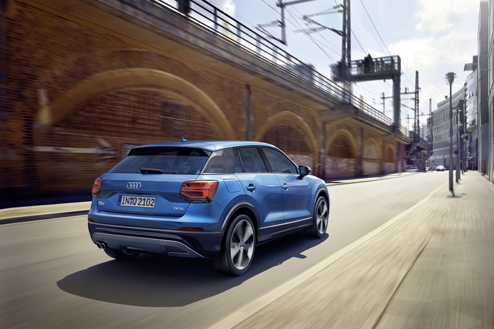 Embora tenha elementos estilísticos que fazem lembrar um veículo todo-o-terreno, como a cintura elevada, jantes de grandes dimensões e proteções de plástico nas cavas das rodas, o Audi Q2 está mais à vontade na cidade, com uma distância entre eixos elevada mas dimensões compactas, usando a nova plataforma MQB para reduzir o peso para apenas 1205 kg.