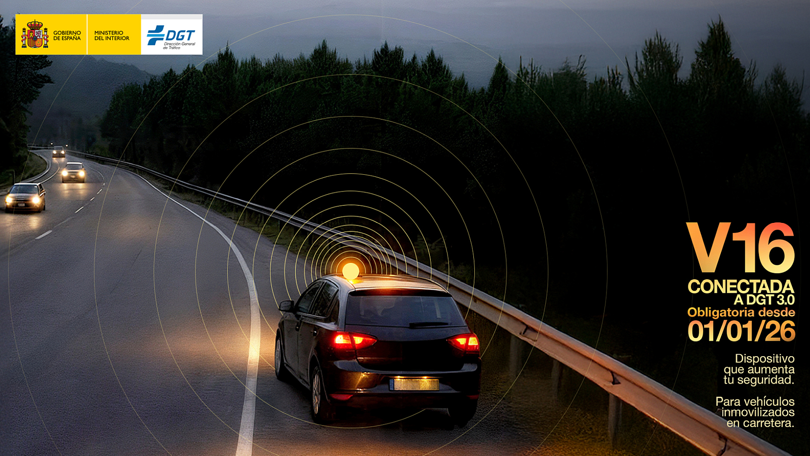 A introdução das luzes V-16 para indicação de acidentes e avarias na estrada acaba com a utilização do triângulo convencional posicionado no chão, com a Direção-Geral de Viação de Espanha a dizer que o método novo é muito mais visível (reconhece-se a situação de perigo até 1 km de distância!), mesmo sob condições meteorológicas adversas.