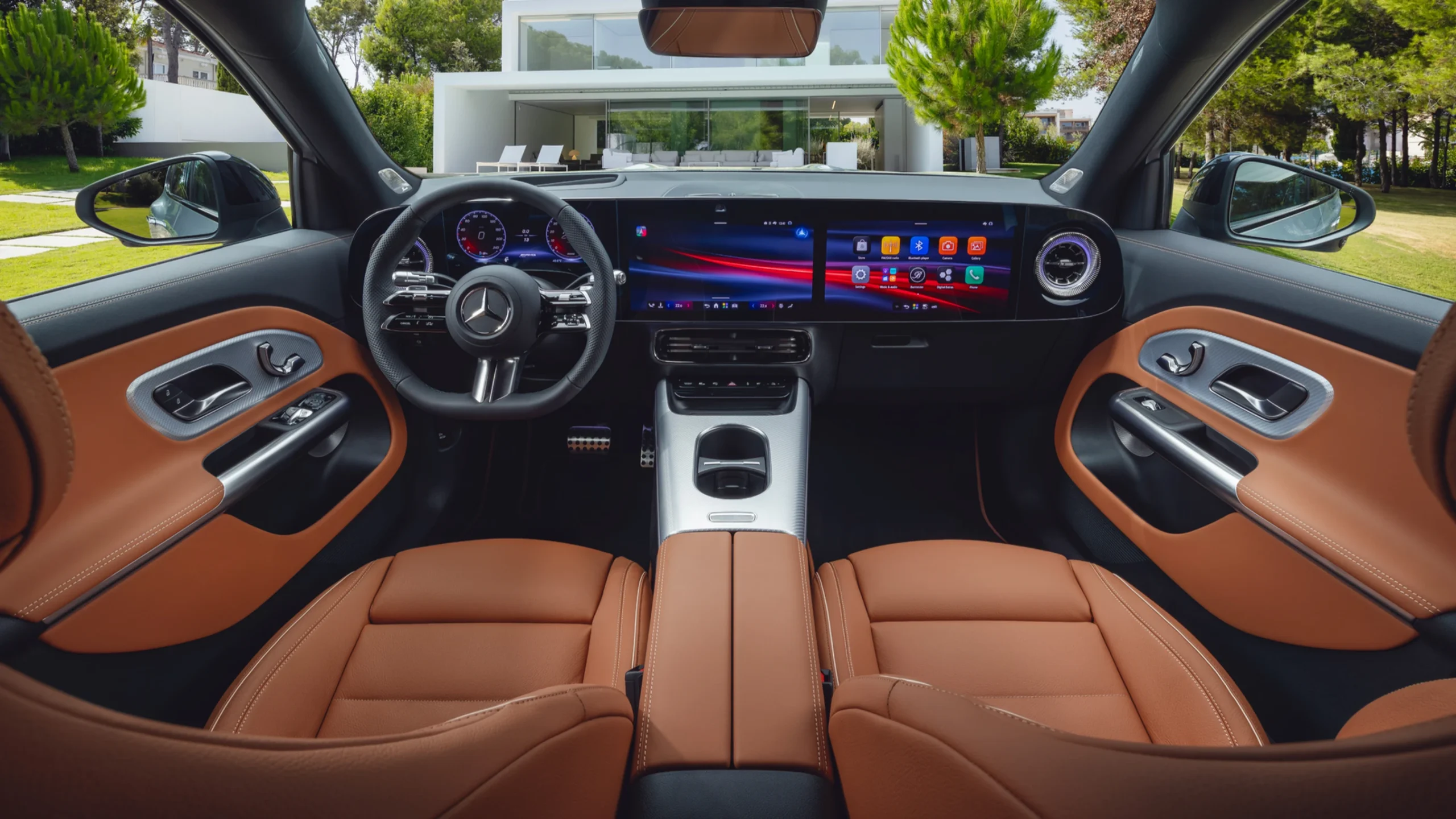 No painel de bordo, quarta geração do MBUX, com o Superscreen que associa três monitores: 10,25’’ para o condutor, à esquerda, 14’’ para o sistema multimédia, ao centro, e 14’’ para o passageiro dianteiro, à direita. Existem 11 estilos de ambiente para o interior e reconhecimento de voz alimentado por inteligência artificial (IA) e que combina tecnologias Google e Microsoft, o que assegura acesso a diversidade enorme de aplicações e a capacidades de atualização remota (“over-the-air”).