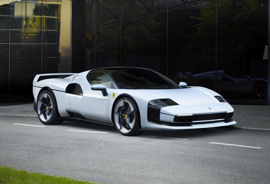 De regresso ao exterior, referência para as linhas mais afiladas e verticais, ao estilo da linguagem de design que parece ser, atualmente, da preferência de Flavio Manzoni, sublinhadas, por exemplo, na secção dianteira, na asa traseira, e no próprio formato das portas. A cor SC400 White e as jantes são exclusivas de um projeto que, como referido, deu origem a um único exemplar, embora o seu visual possa ser observado, bem de perto, no Museu Ferrari, onde o construor de Maranello tem já exposta uma maquete do mesmo à escala real.
