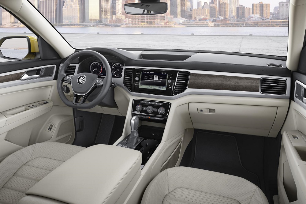 O VW Atlas tem mais de cinco metros de comprimento (5037 mm) e quase dois metros de largura (1979 mm), garantindo um habitáculo grande o suficiente para transportar sete adultos e bagageira. A terceira fila de bancos também pode ser rebatida facilmente para ampliar o espaço da bagageira ao mesmo tempo que continua a ter uma vocação familiar. O Atlas usa no painel de instrumentos o cockpit virtual já conhecido de outros modelos. Há opções de conectividade para aparelhos Apple, Android e MirrorLink.