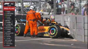 A segunda sessão de treinos livres está interrompida depois do acidente violento de Daniel...