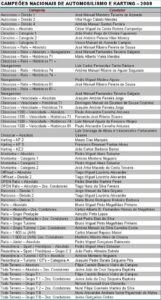 Lista de Campeões Nacionais de Automobilismo e Karting – 2008