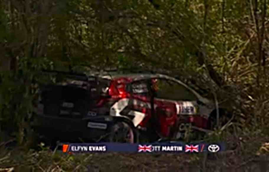Segundo a informação disponível, Evans entrou demasiado rápido na curva depois de a ter identificado como uma “direita três”, percepção que, de acordo com a comunicação captada na repetição do incidente, esteve na origem do erro. A sequência terminou com o Toyota fora da estrada, num acidente de grande impacto visual que interrompeu bruscamente a progressão da dupla.
