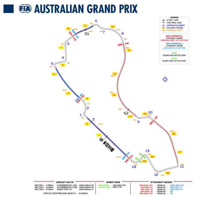 A FIA confirmou que Melbourne, que anteriormente tinha quatro zonas de DRS, passa a contar com cinco zonas de “straight mode” em 2026. Mantêm-se ativações nos locais equivalentes às antigas zonas (entre as curvas 2 e 3; na sequência das curvas 9-10-11; e na recta da meta), com a novidade de uma ativação adicional no curto segmento entre as curvas 5 e 6.