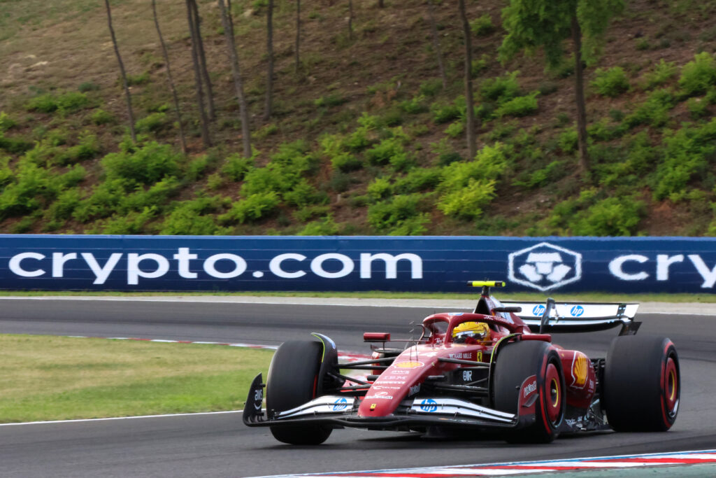 Na Hungria deu para reparar bem no comportamento em curva do Ferrari do Hamilton. A Scuderia está, de facto, de parabéns, porque conseguiu a proeza única de construir um carro que consegue fugir de frente E de traseira. É subvirador a meio das curvas, e sobrevirador na aceleração à saída delas. Para pilotos como o Hamilton, que gostam de uma frente bem agarrada ao solo e de uma traseira controlável, conduzir um carro com estas características é um pesadelo. Já o Leclerc dá-se melhor porque a condução dele e instintiva e mais agressiva, o que disfarça um bocadinho os problemas do carro (mas não é que o Charles Leclerc não se queixe!).