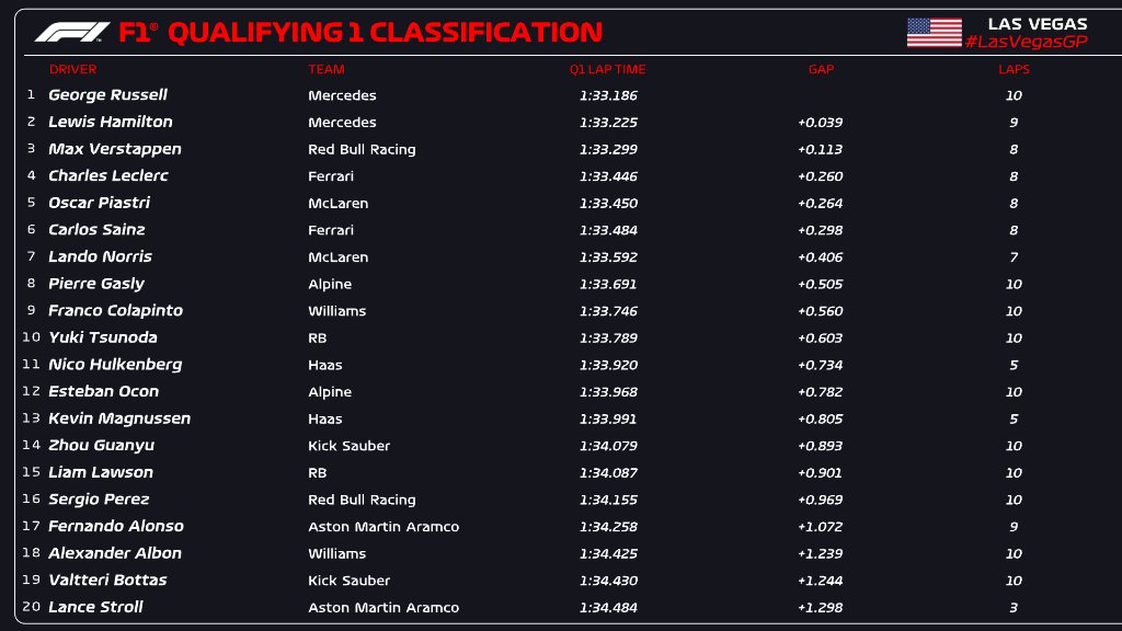George is P1, Lewis P2 👏#F1 #LasVegasGP pic.twitter.com/2iHRed8S6S
