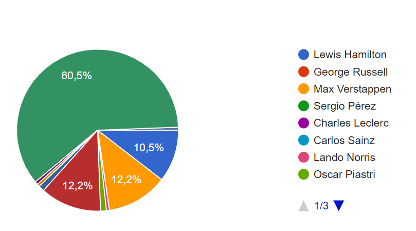 Ou os leitores ensandeceram, ou o gráfico e os resultados anunciados estão errados. O Alex Albon como melhor piloto do dia? A sério? O Alonso, que não fez nada de jeito, com 12%, enquanto o Norris, que foi Driver of the Day no formula1.com, nem sequer consta dos cinco primeiros – tal como o Ricciardo, que fez uma boa corrida? Vejam lá isso melhor, por favor.