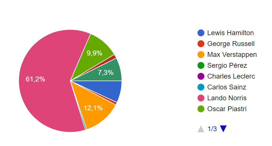 Sem surpresa, Lando Norris foi o piloto mais votado, com 61,2% dos leitores que votaram a escolher o piloto da McLaren. Max Verstappen foi o segundo classificado com 12,1% e Oscar Piastri foi o terceiro mais votado com 9,9% dos votos. Alex Albon (7,3%) e Lewis Hamilton (6,9%) completaram o top 5.