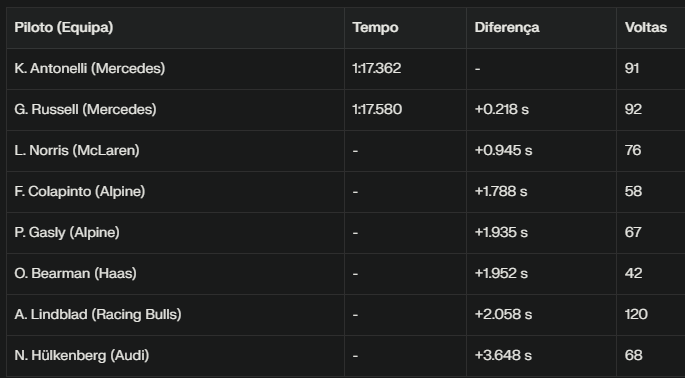 A McLaren, por seu lado, utilizou a parte inicial da manhã para derradeiros preparativos nas boxes, antes de o recém-coroado Campeão do Mundo Lando Norris se estrear a meio da sessão, exibindo o número 1 no seu monolugar.