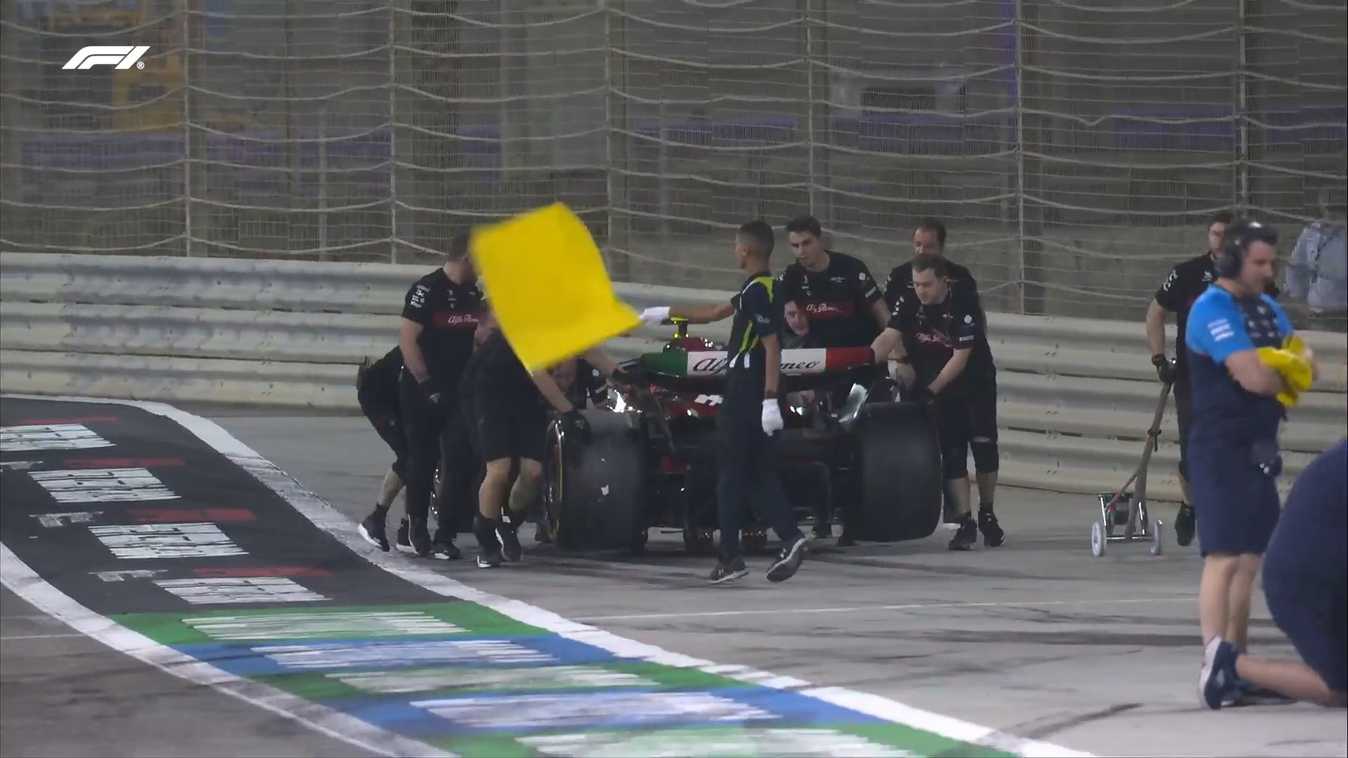 Na mesma altura, Zhou Guanyu saia do pitlane mas ficou parado antes de sair para a pista, obrigando os mecânicos a resgatarem o carro para a box. Parecia ter tido um problema de embraiagem quando treinava o arranque.