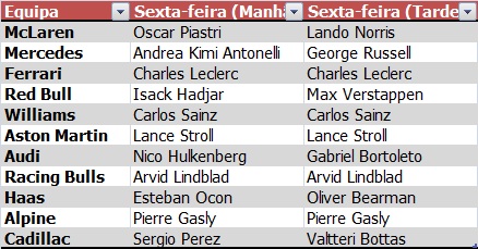 Cinco equipas optaram por manter apenas um piloto ao volante, enquanto seis dividirão as sessões entre dois. Charles Leclerc, Lance Stroll, Carlos Sainz, Arvid Lindblad e Pierre Gasly estarão em pista durante todo o dia. Após estas sessões, só em Melbourne os monolugares voltarão a acelerar, já em modo competitivo.