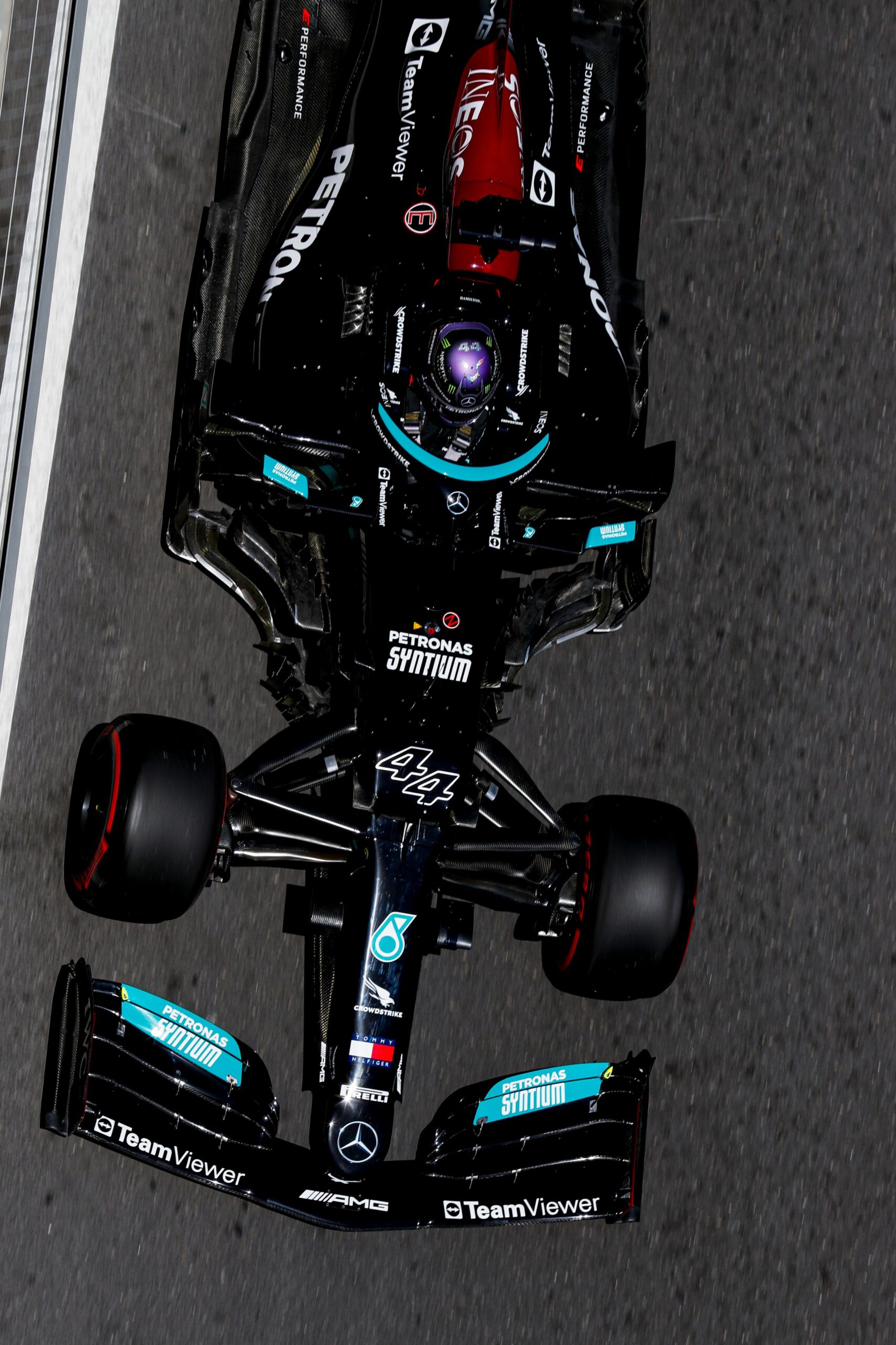 Os dois carros da Mercedes escolheram uma estratégia completamente diferente de todos os outros, montando pneus médios.