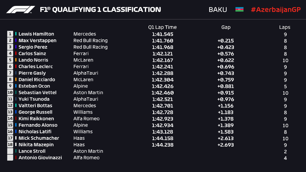 GP Azerbaijão F1, Q1: Lewis Hamilton mais rápido