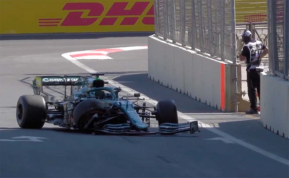 Lance Stroll bateu nas proteções do traçado de Baku obrigando à primeira paragem da sessão de qualificação. Charles Leclerc era o único piloto que tinha marcado tempo na sessão.