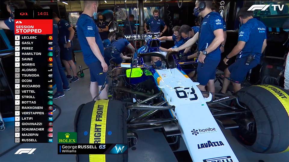 Com a paragem das bandeiras vermelhas, a Williams teve mais tempo para recuperar o carro de George Russell e o piloto conseguia entrar para o monolugar para marcar tempo na sessão.