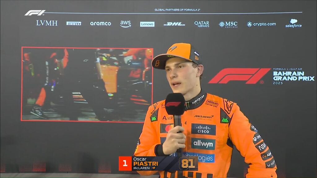 No final da corrida, a primeira vitória da McLaren no Bahrein, Piastri estava satisfeito com o resultado e com a sua prestação: