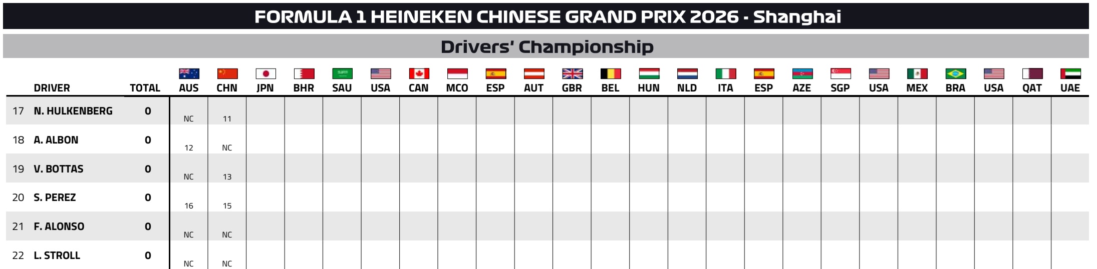 GP da China F1: Resultados e classificações