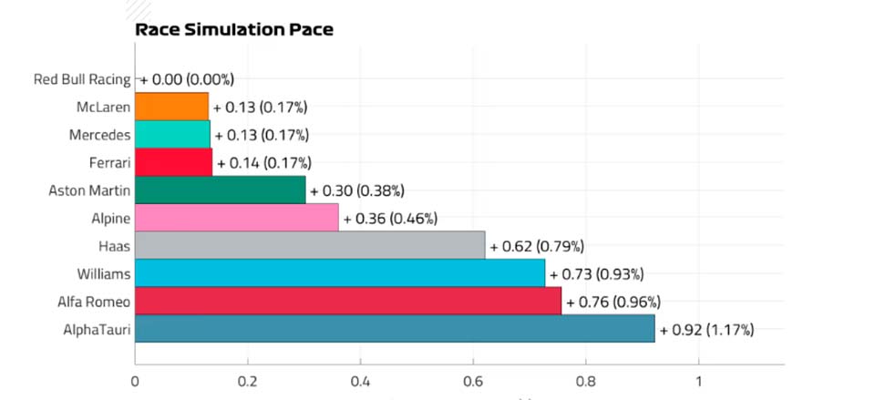 No entanto, os dados de ‘stints’ longos sugerem que os Red Bull ainda são a equipa a bater nessa métrica, enquanto Max Verstappen admite que poupou pneus devido à Alocação Alternativa de Pneus que está a ser experimentada pela Pirelli este fim de semana – com os pilotos a correrem com pneus duros na Q1, médios na Q2 e macios na Q3 – a afirmação do campeão em título de que “o carro ainda está forte” mostra que a equipa está cheia de confiança, pois procura manter a sua espantosa folha de serviço nesta temporada.