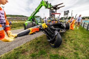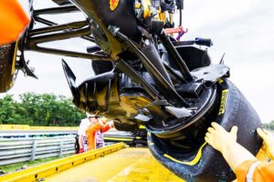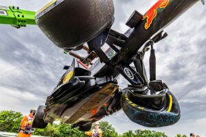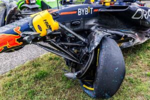 Num dia em que a Red Bull introduziu melhorias no seu já ‘poderoso’ RB19, os adeptos poderiam esperar ver a equipa que lidera a classificação dos construtores com mais de 200 pontos a dominar o topo da tabela de tempos, mas os planos da Red Bull foram frustrados por um acidente de Sergio Perez apenas três minutos após o início da primeira sessão (veja nas fotos o estado em que ficou o carro), enquanto Max Verstappen foi 11º e Sergio Perez (no seu RB19 reconstruído) em 18º na segunda sessão, o ritmo não foi nada dominador, o que se explica por serem peças novas que a equipa ainda não sabe na perfeição como funcionam.