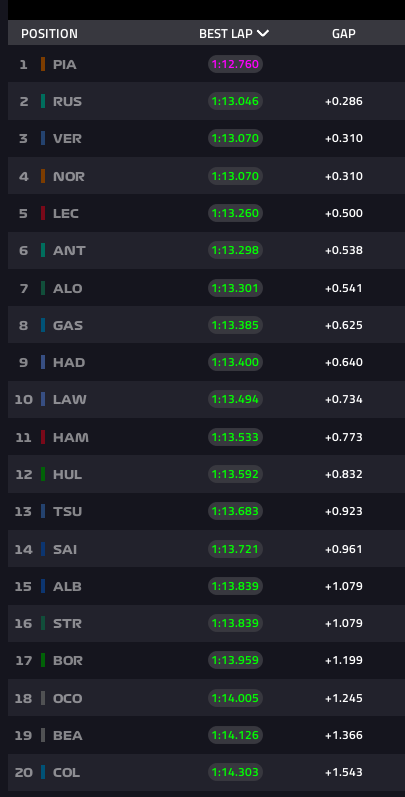 Estou chocada. Nunca pensei que a directiva prejudicasse tanto a McLaren. Piastri em 20º e Norris em 17º! Ops… estava a ver a classificação ao contrário… 🙂
