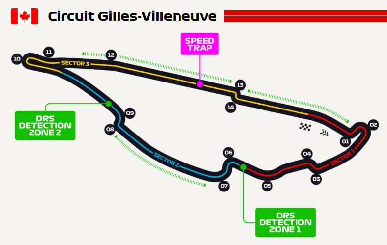 A pista de 4361 metros foi batizada em honra de Gilles Villeneuve e tem seis curvas à esquerda e oito à direita e tem uma das velocidades médias mais baixas da época. A estabilidade na travagem e a tração à saída das chicanes e das curvas mais lentas, que incluem o gancho que conduz a uma reta muito longa, são as chaves para ser competitivo, assim como um carro que possa mudar de direção rapidamente.