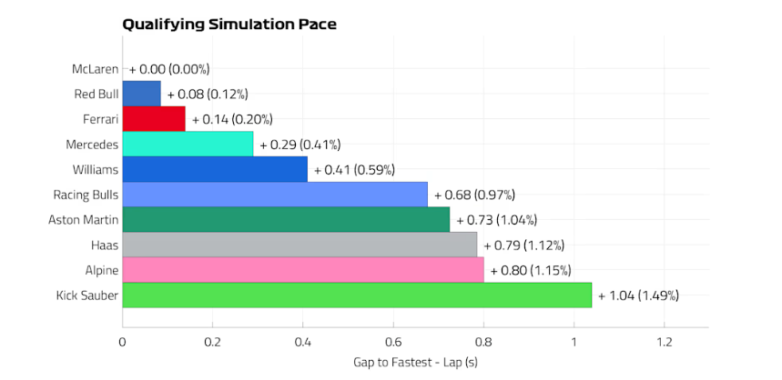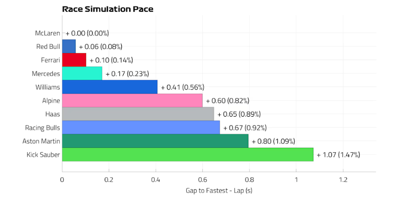 Os dados mostram que a McLaren não mostrou todo o seu ritmo máximo na sexta-feira, em que mantém uma vantagem de 0,08s sobre a Red Bull na qualificação e 0,06s no ritmo de corrida. O que é ‘nada’…
