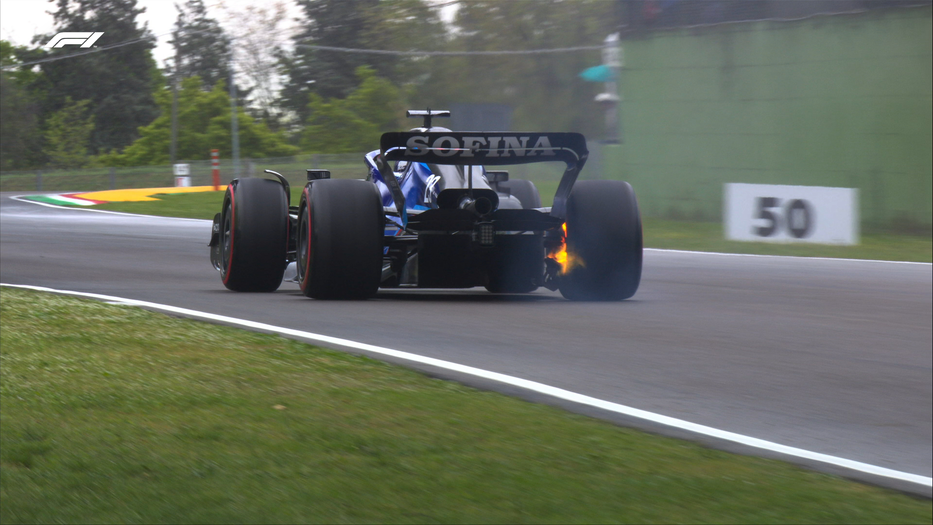Debris scatters across the track as Alex Albon's rear brakes overheat. He's limped back to the pits and the fire is out. #ImolaGP #F1 pic.twitter.com/WujhKc6pp9
