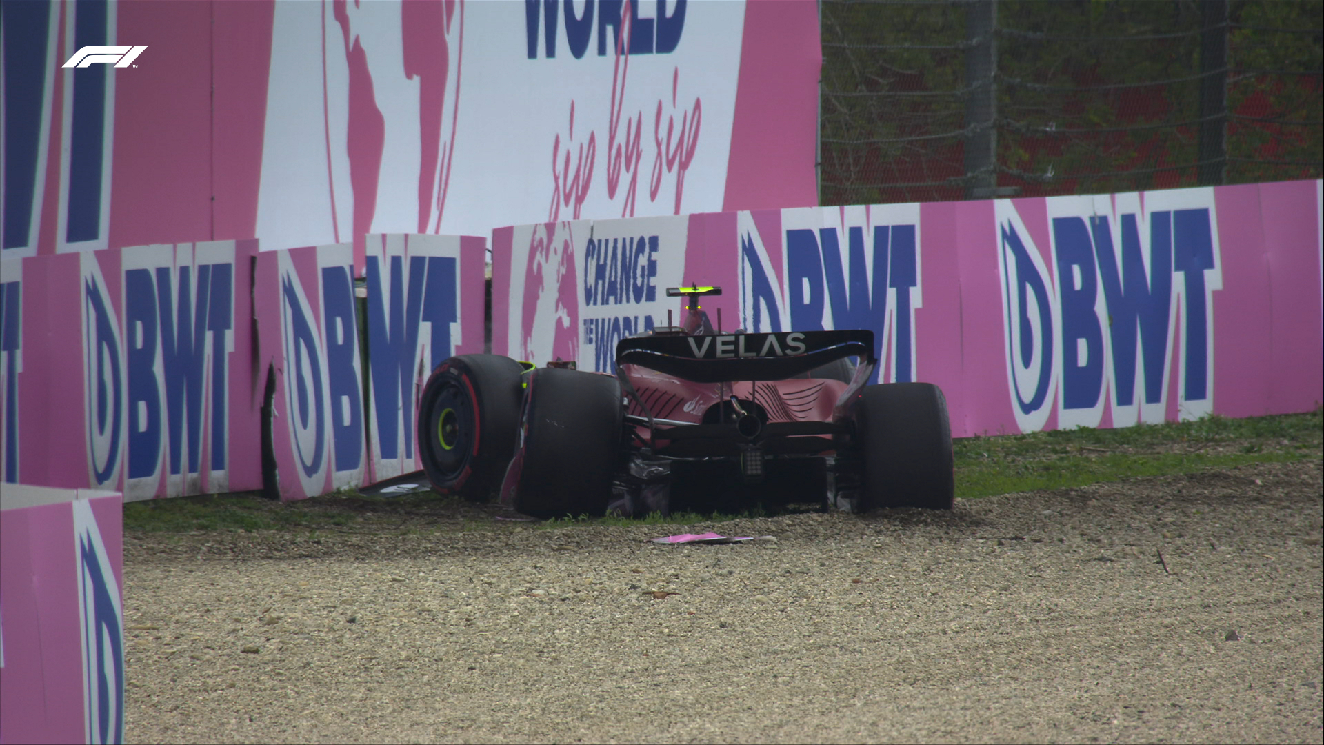 Carlos Sainz, que estava no segundo lugar da tabela de tempos, perdeu o controlo do Ferrari F1-75 e bateu nas proteções do traçado na curva Rivazza 2.