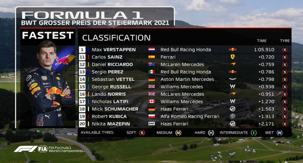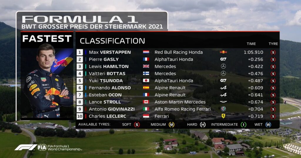 GP Estíria F1: Verstappen lidera TL1 com Gasly e Hamilton atrás