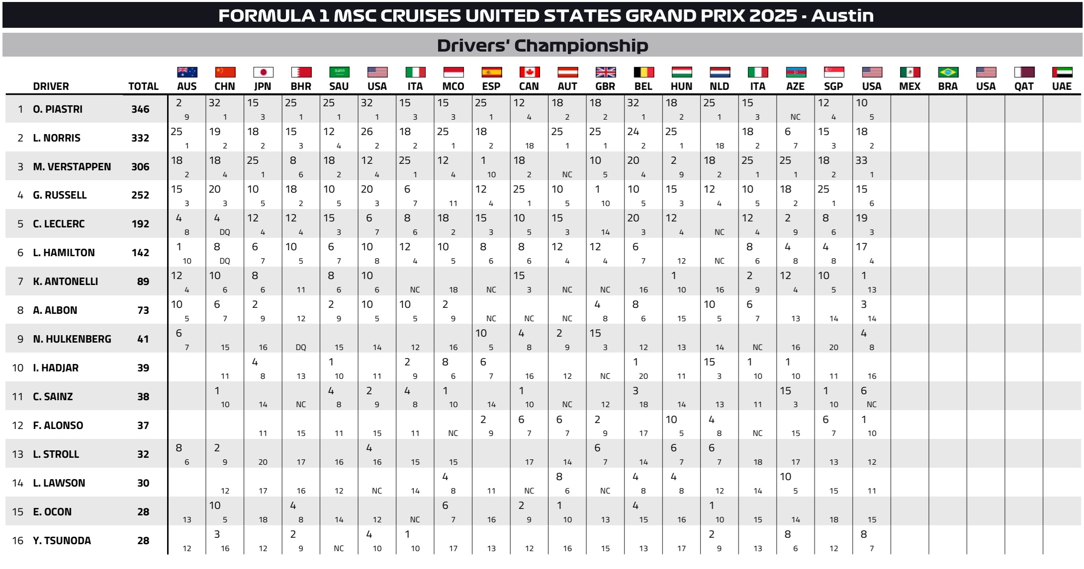 Com a vitória de Max Verstappen no GP dos EUA, as contas do campeonato ficaram ainda mais baralhadas e o neerlandês está agora a “apenas” 40 pontos da liderança, quando essa diferença já foi de mais de 100 pontos. Uma recuperação notável que vem dar ainda mais incerteza ao campeonato, agora entramos na reta final.
