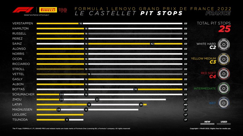 O último GP de França dos próximos anos, dada a cada vez mais certa saída de Paul Ricard do calendário, deu-nos uma corrida emocionante e interessante, como nunca se viu em Paul Ricard desde o seu regresso ao calendário. Eis alguns dos números da corrida francesa: