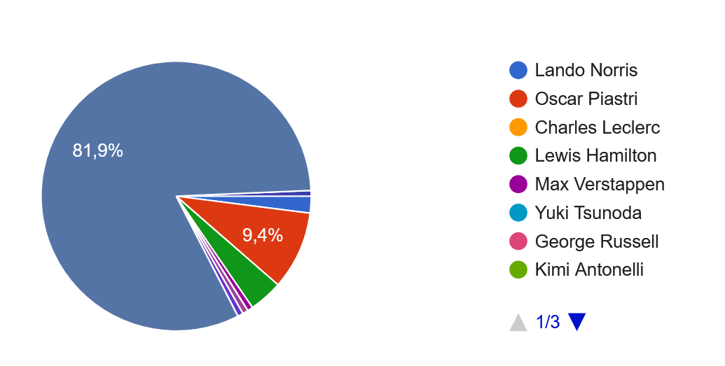 A votação do MPD do GP da Grã-Bretanha foi clara. Nico Hulkenberg 81,9% dos votos, seguindo-se Oscar Piastri 9,4% e Lewis Hamilton 4%. Lando Norris recebeu apenas 2% dos votos.