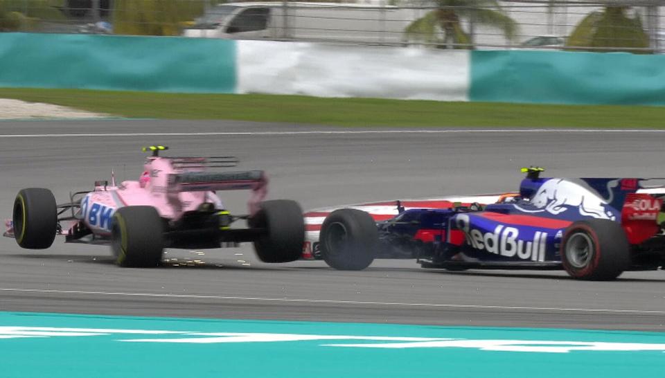Decididamente o Grande Prémio da Malásia deixou vários pilotos agastados com algum adversário. Foi o caso de Esteban Ocon, que culpa Carlos Sainz Jr pelo toque que o fez entrar em pião e atrasar e lhe custou vários pontos na corrida. Na altura o francês da Force India ‘caiu’ para a 12ª posição, vindo a concluir apenas no 10º posto, enquanto o espanhol da Toro Rosso abandonou com problemas que se suspeita estarem relacionados com o motor.