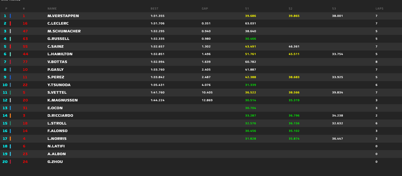 O TL3 do GP de Miami tinha pouco mais de 15 minutos decorridos quando Esteban Ocon perdeu o controlo do carro na entrada para a apertada chicane do Autódromo Internacional de Miami (a mesma zona onde Carlos Sainz teve o acidente ontem). Alpine #31 ficou muito danificado e vai obrigar a trabalho extra. Quando a sessão foi interrompida, Max Verstappen liderava o treino, seguido de Charles Leclerc e Mick Schumacher, numa altura em que quase metade do pelotão ainda não tinha qualquer tempo feito.