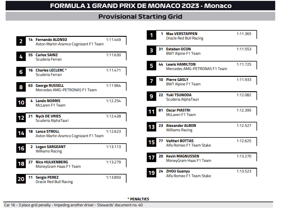 GP Mónaco F1: Relembre a grelha de partida