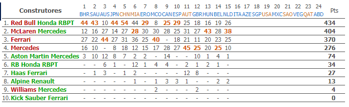 GP Países Baixos F1: Classificação/ Resultados / Campeonato