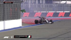 Estava a sessão a chegar aos 25 minutos finais, quando Antonio Giovinazzi perdeu o controlo da traseira do Alfa Romeo na saída da curva 9 e bateu nas proteções do circuito russo. A sessão foi interrompida sob bandeiras vermelhas, com os comissários de pista a terem de retirar o carro do italiano de pista. Nesta altura ainda não sabemos se a colisão obrigará à substituição de algum componente e que obrigue a uma penalização.
