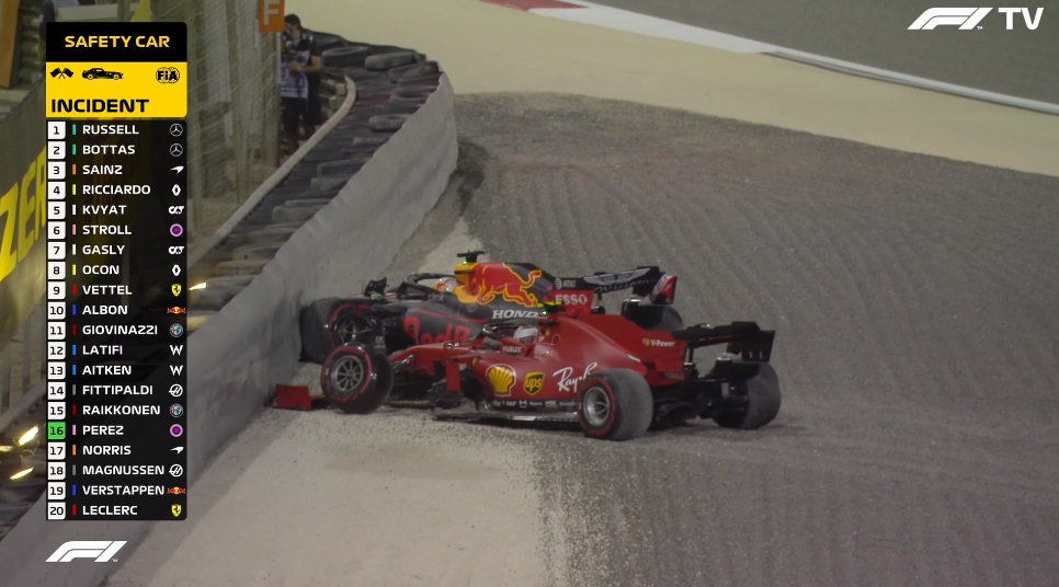 GP Sakhir F1: Safety-Car em pista. Verstappen e Leclerc de fora