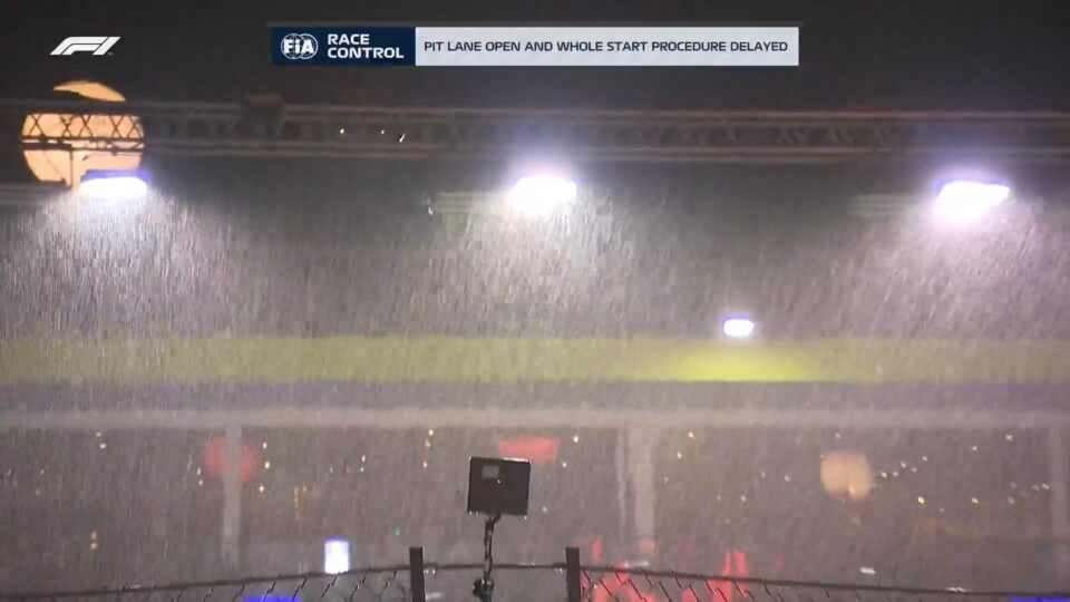 A corrida do Grande Prémio de Singapura não vai ocorrer à hora prevista, às 13 horas em Portugal continental. A prova em Marina Bay vai começar mais tarde, é certo, não se sabendo ainda exatamente a que horas, visto estar ainda a chover com bastante intensidade devido à passagem de uma tempestade pelo circuito de Singapura.