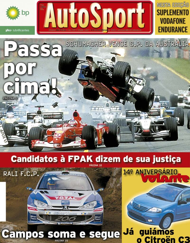 Completam-se por esta altura 20 anos do Grande Prémio da Austrália de 2002 – o de 2022 realiza-se dentro de pouco mais de uma semana – uma corrida marcada por vários acontecimentos relevantes, o mais recordado o aparatoso acidente na partida, antes da curva um, quando Ralf Schumacher acertou no Ferrari de Rubens Barrichello num acidente que envolveu também os estreantes Takuma Sato, Allan McNish e Felipe Massa, além de Olivier Panis, Giancarlo Fisichella, Jenson Button e Nick Heidfeld.