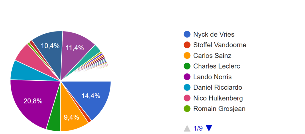 Fornecemos algumas hipóteses para os nossos leitores escolherem e o piloto mais votado foi Lando Norris. O piloto britânico arrecadou 20.8% dos votos e depois de uma excelente época na McLaren, os leitores do AutoSport, no caso da saída de Hamilton, gostariam de ver uma dupla Lando Norris / George Russell. O segundo piloto mais votado foi Nyck de Vries, campeão de Fórmula E e piloto de reserva da Mercedes. O jovem neerlandês já mostrou qualidade no passado, sagrando-se campeão de F2 antes de se mudar para os monolugares elétricos e arrecadou 14.4% dos votos, à frente de Fernando Alonso (11.4%) que ficou no top 3 dos mais votados. Para Alonso seria uma oportunidade de ouro e os nossos leitores consideram que o espanhol teria ainda argumentos para convencer a Mercedes. Sebastian Vettel (10.4%) e Carlos Sainz ( 9.3%) conseguiram ainda um lugar no top 5.