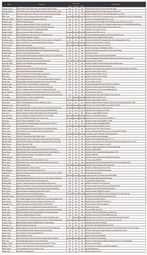 Lista de pilotos presentes no ‘Goodwood Festival of Speed’