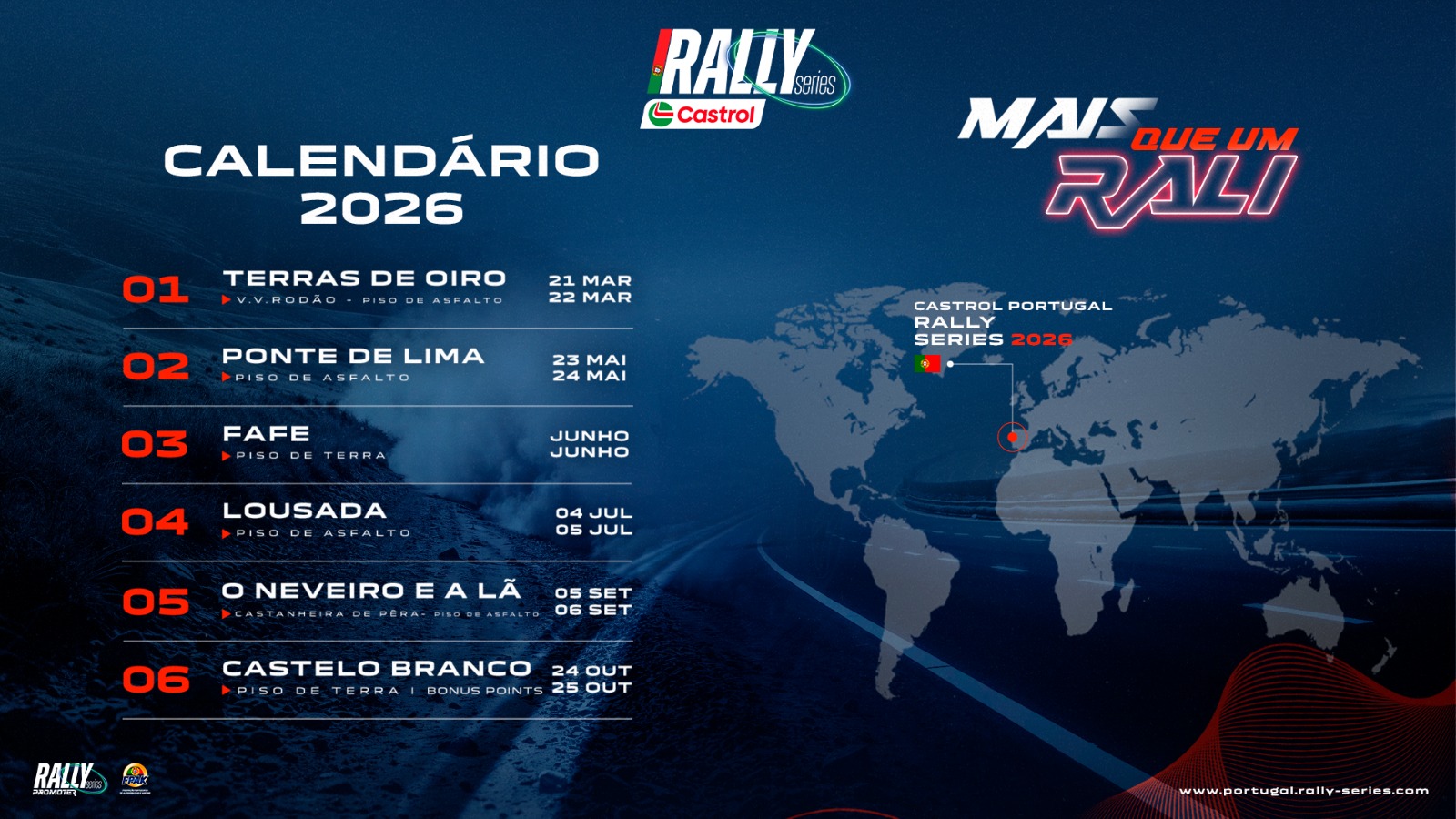 O Castrol Portugal Rally Series prepara-se para iniciar a sua segunda temporada em 2026 com um calendário mais robusto, novas categorias competitivas e ajustes regulamentares que consolidam o modelo inovador lançado no ano anterior. A época contará com seis rondas, repartidas entre quatro provas em asfalto e duas em terra, decorrendo entre março e outubro.