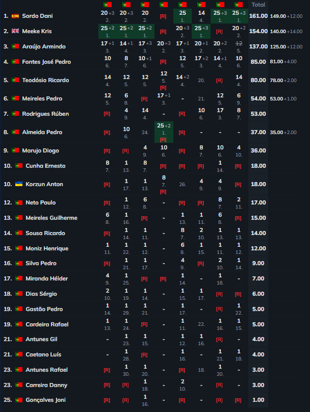 Assim, Sordo sagrou-se Campeão, sucedendo a Meeke. Foram dois anos de campeões estrangeiros que muito contribuíram para a notoriedade do CPR. Armindo Araújo foi, de longe, o “melhor dos outros”, não venceu, mas obteve três segundos lugares. José Pedro Fontes só conseguiu ir ao pódio na Madeira. Teodósio não o conseguiu. Pedro Meireles foi ao pódio no Rali de Portugal e ainda é competitivo. Rúben Rodrigues realizou uma época a “tempo inteiro” no CPR e prepara-se para subir o nível em 2026. Pedro Almeida venceu o Rali de Portugal, mas fartou-se das “politiquices” do CPR e não deverá regressar a tempo inteiro. Diogo Marujo está a realizar um “Mestrado” nos Rally2. Ernesto Cunha teve um ano muito azarado e já colocou o Skoda à venda. Paulo Neto teve altos e baixos e apanhou um enorme susto na Madeira.