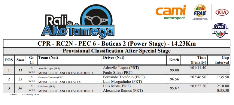 Nesta prova, Adruzilo Lopes e Paulo Silva, de regresso ao Mitsubishi Lancer Evo IX, venceram com autoridade na frente de Fernando Teotónio e Luís Morgadinho (Mitsubishi Lancer Evo X), que foram segundos a 1m35.5s. A completar o pódio e o plantel dos RC2N ficaram Luís Mota e Alexandre Ramos (Mitsubishi Lancer Evo IX), a 2m10.8s. No final do primeiro troço a margem de Adruzilo para Teotónio já era 17.6s e nunca parou de aumentar até ao fim do rali. Luís Mota ainda esteve perto de Teotónio, mas a partir da PE3 a margem entre ambos também se dilatou favoravelmente a Teotónio.