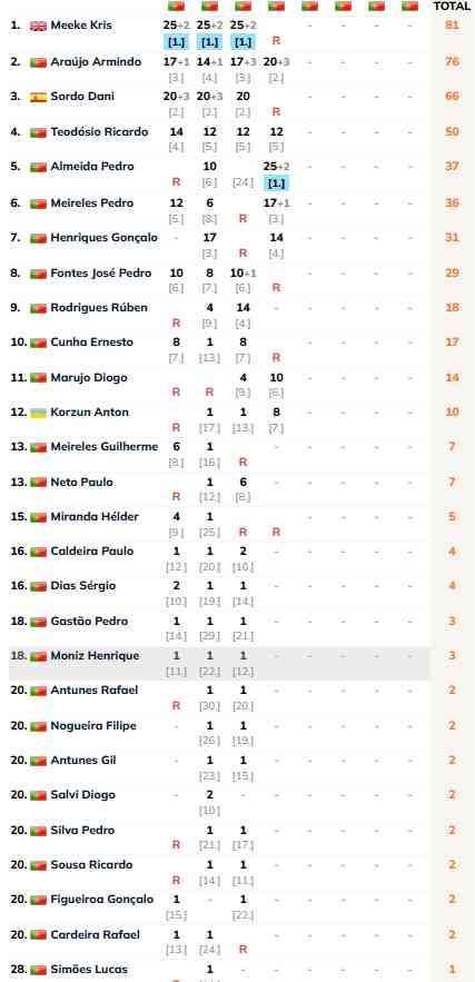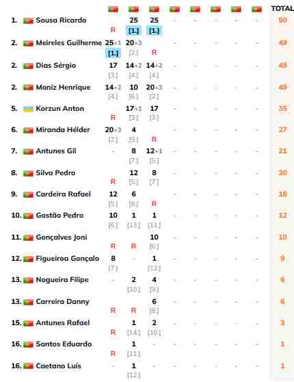 2RM: 1º, Ricardo Sousa, 50 pontos; 2ºs, Guilherme Meireles Sérgio Dias e Henrique Moniz, 49; 5º, Anton Korzun, 35; 6º, Hélder Miranda, 27; 7º, Gil Antunes, 21; 8º, Pedro Silva, 20; 9º, Rafael Cardeira, 18; 10º, Pedro Gastão, 12.