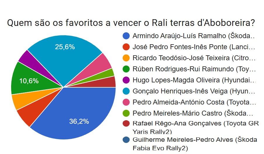 Com a aproximação de mais uma edição do Rali Terras d’Aboboreira, as expectativas dos aficionados começam a ganhar forma e os resultados foram concludentes: Armindo Araújo, navegado por Luís Ramalho aos comandos do Škoda Fabia RS Rally2, é o principal favorito, recolhendo 36,2% das preferências.
