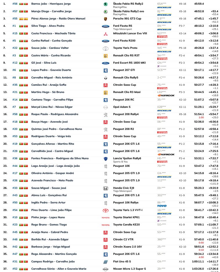 A sua performance arrasadora permitiu-lhes terminar o rali com uma vantagem expressiva de 53.4 segundos sobre os segundos classificados, Diogo Marujo e Paulo Roque, que pilotavam um Skoda Fabia Rally2 evo. Esta diferença sublinha a boa performance de Barros e Henriques, cuja supremacia nunca esteve em causa ao longo de toda a prova.
